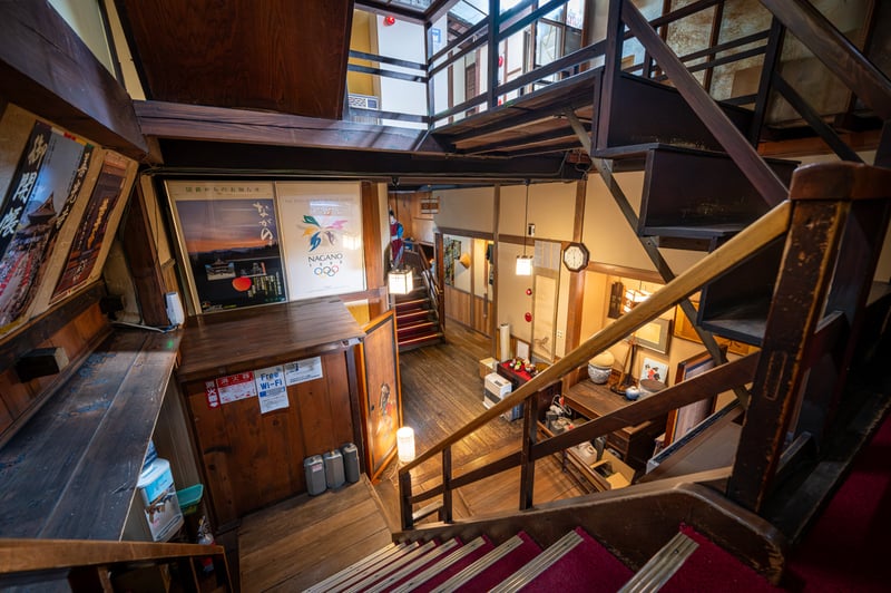 Beginning as a merchant’s shop in 1876 before becoming an accommodation 15 years later, Shimizuya Ryokan is the only original Japanese ryokan inn along Nagano City’s main street. Even today it retains its traditional interior, including wooden pillars and fusuma sliding doors painted at the beginning of the Meiji Period. As you take in the unique and charming elements of the inn's architecture, you may get lost somewhere between its steep staircases and meandering corridors.