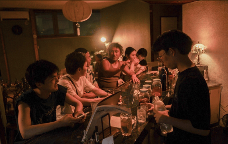 Relaxing and socializing at the Tomoshibi Bar (open on Saturdays)