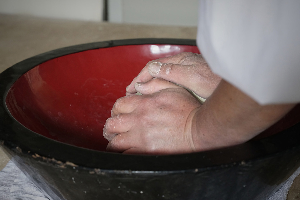 〈蕎麦会席〉をつくるのは、宿坊の主・辻 明紀さんと妻の美幸さん。明紀さんが蕎麦を打ち、料理の味付けや盛り付け、監修は美幸さんが担う。