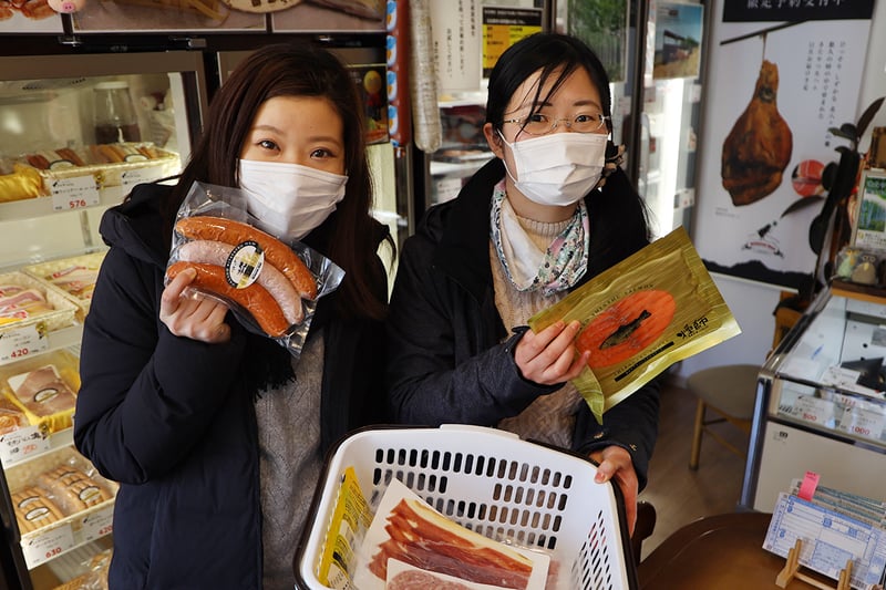 さらに立ち寄ったのは、ドイツの気候に似た八千穂高原でベーコンやハム、ソーセージを丹精込めて作っているお店「きたやつハム」。地下600メートルから汲み上げた水を使用。ベーコンは肉に塩をすり込む「乾塩法」で肉本来の味をより一層引き出し、ロースハムは塩水に漬け込む「湿塩法」で、柔らかくジューシーなハムに仕上げています。夕食が待ち遠しい。