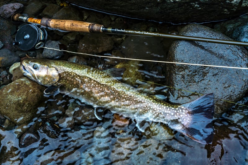 行き帰りのアプローチが長く、「沢登り」してたどり着くような渓(たに)の奥には、天然魚たちがひっそりと、それでいて力強く息づいています。釣り人に叩かれていない分、無垢な魚たちが多く、たどり着くことさえできれば釣り自体は比較的容易です。一方、数多の流れを集めた本流(中流域)は、60cmを超えるような大型トラウトたちも悠々と泳いでいます。車道からのアクセスもよいのですが、その分“スレた”狡猾な魚が多く、ポイントも絞りにくいために一匹を釣り上げるのは簡単ではありません。会心の一本が釣れたときは感動もひとしおです。