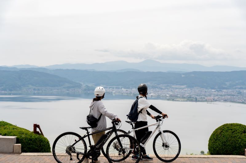 E-バイクで巡る~町並み編~E-バイクなら諏訪湖一周も気軽に楽しめる〈諏訪エリア〉