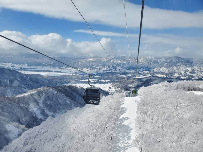 山麓の長坂エリアからやまびこエリアまでをつなぐ「長坂ゴンドラリフト」。ゴンドラ内からの景色も魅力 ©野沢温泉スキー場