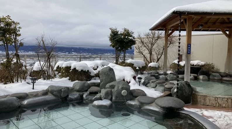 จากบ่อออนเซ็นกลางแจ้ง คุณสามารถเพลิดเพลินกับวิวพาโนรามาของเทือกเขา Yatsugatake และภูเขา Tateshina อันงดงามได้ การแช่ออนเซ็นพร้อมชมภูเขาที่ปกคลุมด้วยหิมะอาบแสงสีส้มยามพระอาทิตย์ตกดิน เป็นไฮไลท์ที่แท้จริงของการเดินทางท่องเที่ยวญี่ปุ่น